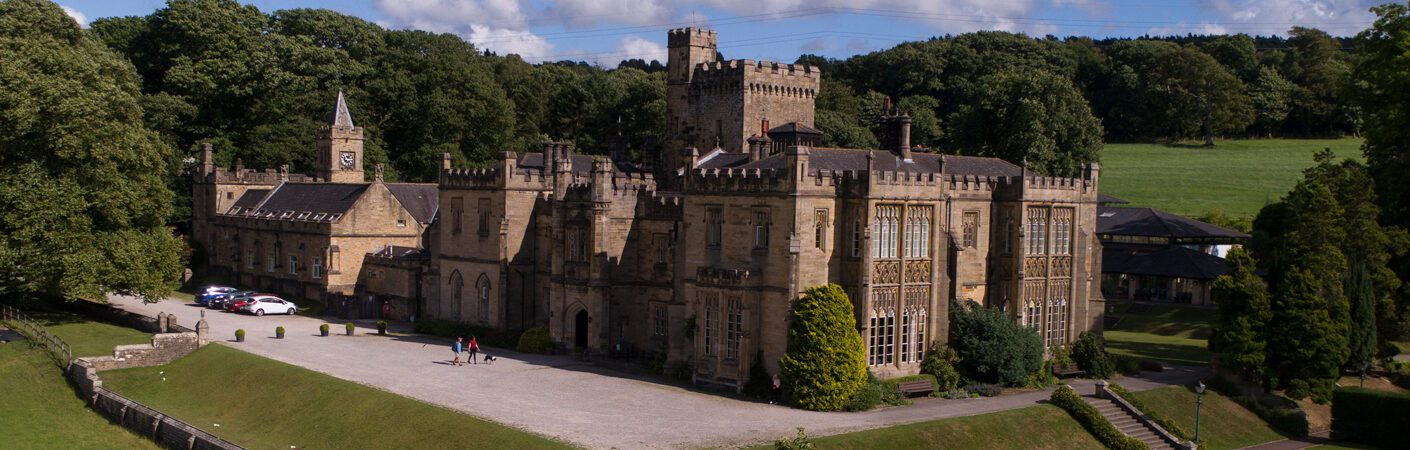 George Richard hired architect Edmund Sharpe to build the hall, and the first construction occurred between 1805 and 1820. George Richard passed away in 1834, which left his brother Oliver as the rightful heir again. Oliver lived until 1843, and on his death, George Richard’s son George became the new rightful heir to the estate. George was a very proactive man and was responsible for developing what we know as the main house today. In 1843, he added the two side extensions to the main house and much of the courtyard. His son, George Marton, completed the final home extension, including the clock tower and laundry corridor.